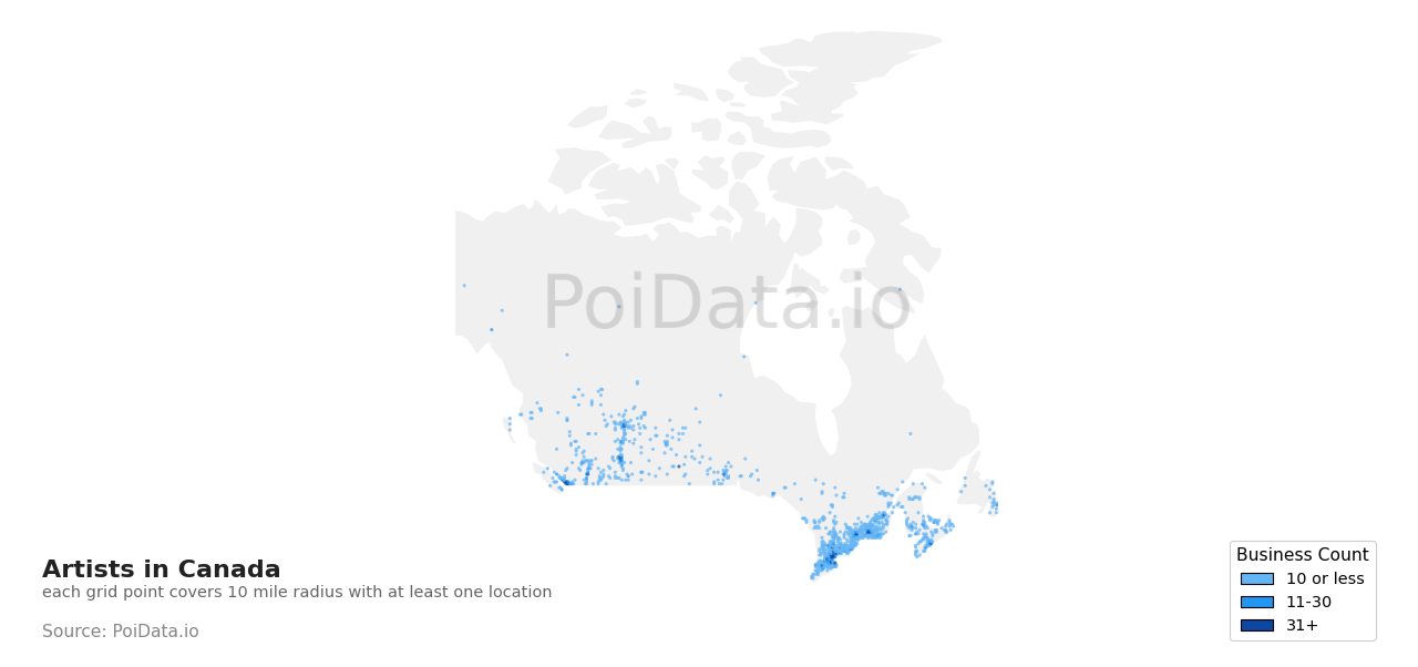 Our dataset for Artists in Canada is one of the most comprehensive in the industry. As of October, 2025, we have compiled data on 6,705 verified listings.